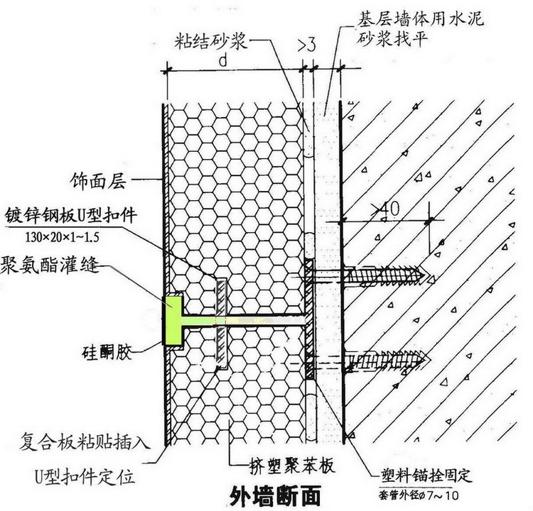 不锈钢板保温隔热装饰 复合板外墙外保温系统 | | 饰面层 | 氟碳喷涂不锈钢板 | | 保温层 | XPS | | 厚度 | 30-90mm | | 安装方式 | 粘贴加锚固 | | 最大尺寸 | 900x1800mm |